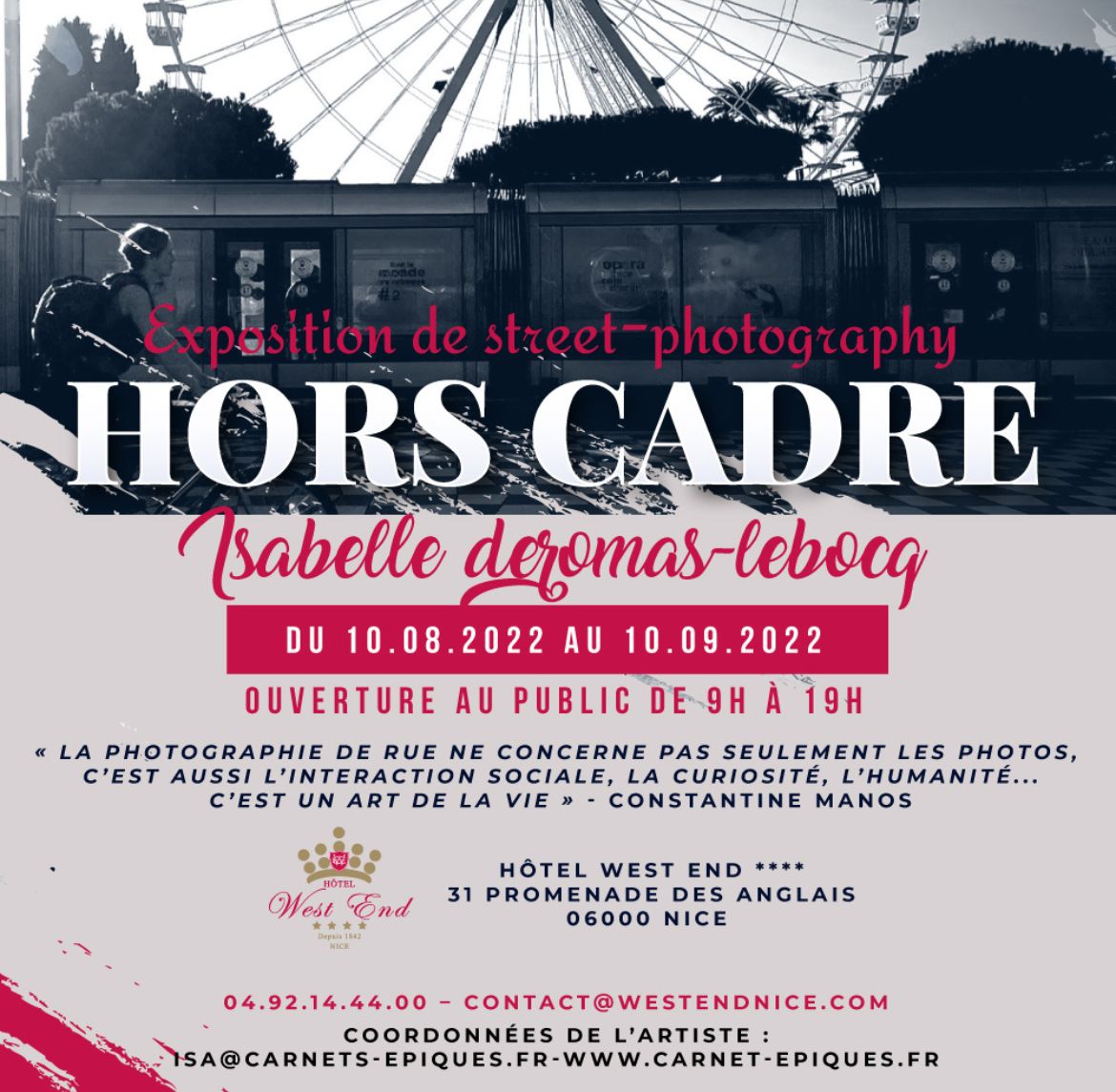 Ainsi Isabelle Deromas-Lebocq prend ses quartiers à l’hôtel West End avec ses clichés représentant des instants de vie des azuréens.